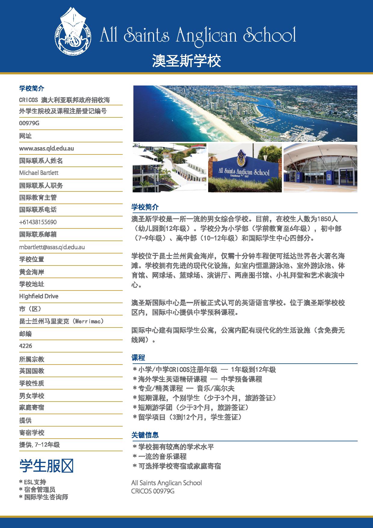 The international program at All Saints caters for international students wishing to study in Australia. During their studies, students are expected to treat themselves and others with kindness and respect, while maintaining academic integrity and dedication to their studies. Download the following brochures to find out more about our programs and the expectations regarding school progress, performance and behaviour.
