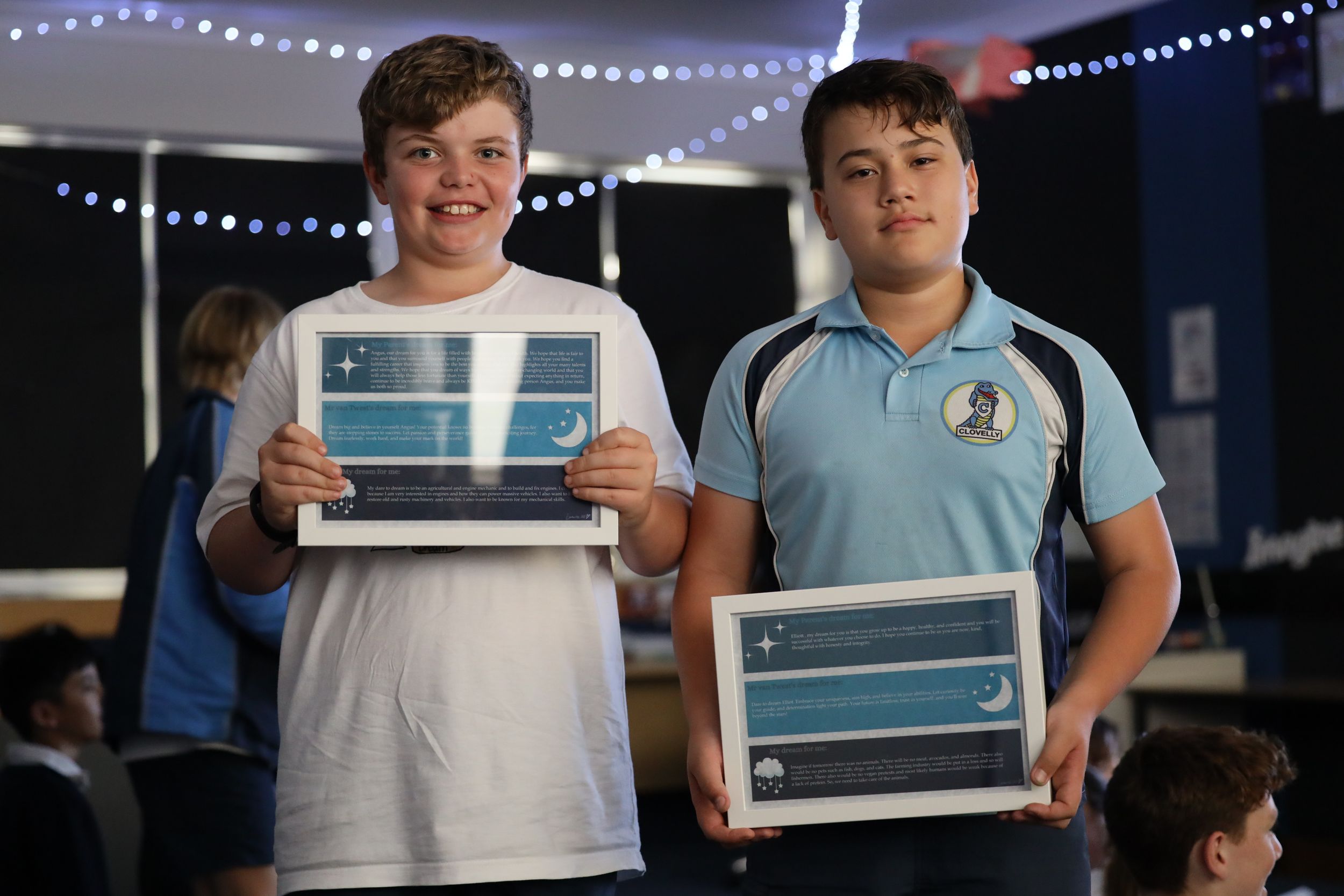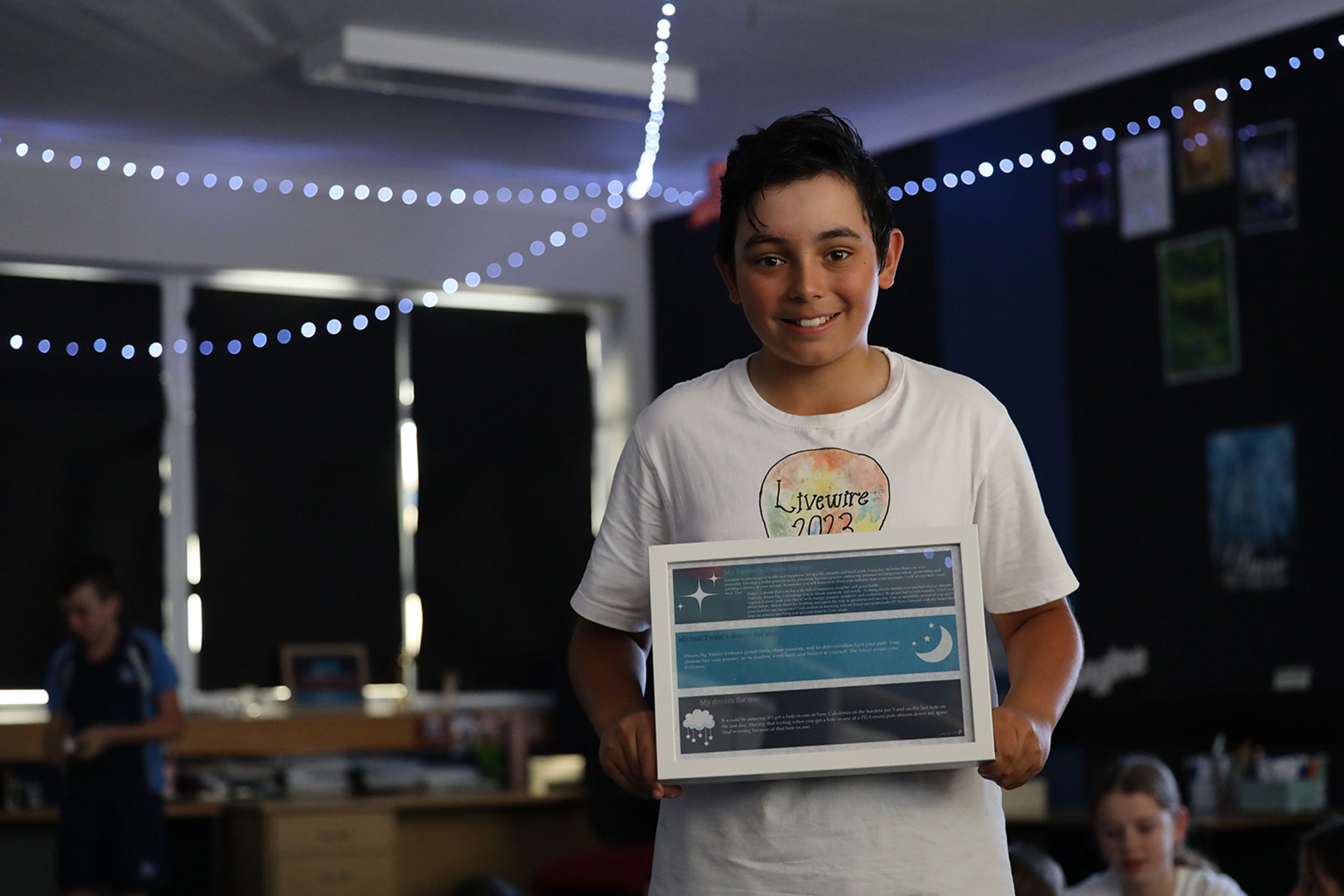 Cosied up in the Junior Schol Drama room, which had been redecorated for the occasion, students in Years 5 and 6 reflected on their dreams. Each student received a special frame which contained three passages; one they had written for themselves, one written by their parents and one by their teachers.